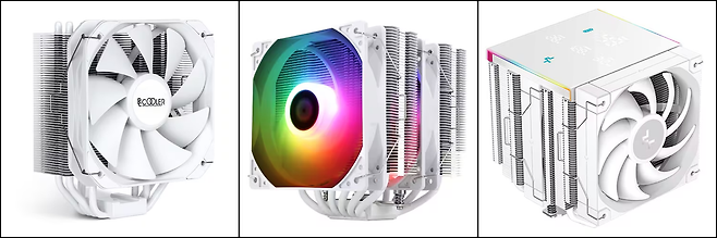 흰색 CPU 쿨러 중에서 인지도와 인기가 높은 제품들을 골라왔습니다. 국민 원팬 쿨러 팔라딘 400(실시간 35,900원)은 이제 설명이 필요 없는 국밥 쿨러가 됐죠. 보급형 PC에서는 이 정도로 만만하게 쓸 수 있는 쿨러를 찾기 힘들 겁니다. 다만 블랙에 비해 화이트가 5천 원 비싸기 때문에 결제 버튼을 누르기 전에 머릿속을 화이트 감성으로 한번 튜닝해야 합니다.