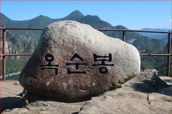 옥순봉(해발 286m)은 희고 푸른 여러 개의 바위가 마치 대나무순처럼 솟아 있다 하여 붙여진 이름입니다. 구담봉에 비해 길이 험하지 않아 산행 초보자도 숲길을 산책하듯 여유롭게 오를 수 있습니다.