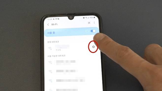 그러면 자신이 연결된 와이파이 정보가 나오게 돼요. 이때 연결된 와이파이 톱니바퀴를 누르세요. 그러면 해당 와이파이의 정보를 볼 수 있는데요.
