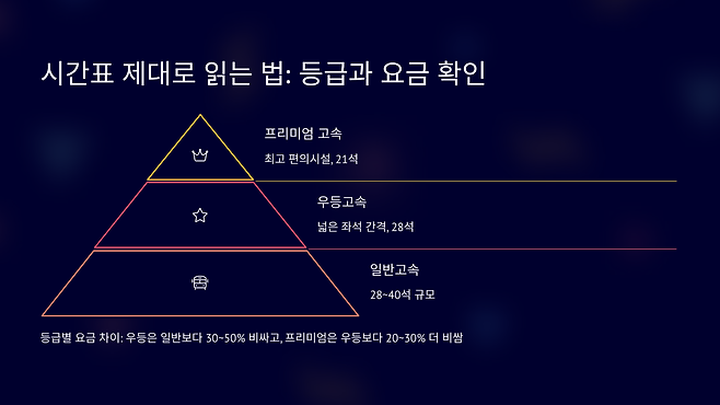 시간표 제대로 읽는 법: 등급과 요금 확인