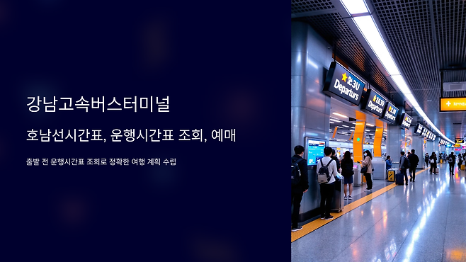 특히 서울고속버스터미널 호남선은 전라남도와 전라북도 지역으로 이동하려는 여행객 및 귀성객에게 필수적인 관문 역할을 합니다. 호남 지역은 아름다운 자연과 풍부한 먹거리, 깊은 역사와 문화를 자랑하여 관광객들이 많이 찾으며, 지역 주민들의 서울 왕래도 잦아 호남선 노선은 항상 활발하게 운영됩니다. 이처럼 중요한 교통 거점인 강남고속버스터미널 호남선을 이용하기 위해서는 정확한 운행시간표를 미리 확인하고 필요한 경우 좌석을 예매하는 과정이 필수적입니다. 이 글에서는 강남고속버스터미널 호남선 이용객을 위해 호남선 시간표 조회 방법, 운행시간표 보는 법, 그리고 간편한 예매 방법까지 전문가적인 시각으로 상세하게 안내해 드리겠습니다. 편안하고 스마트한 여행 준비를 위한 모든 정보를 여기서 얻으실 수 있습니다.