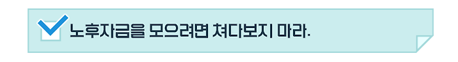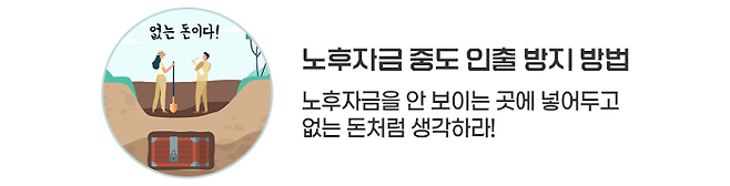 그래서 노후자금을 중도에 찾아 쓰지 않기 위해서는 노후자금을 안 보이는 곳에 넣어두고 없는 돈처럼 생각할 필요가 있습니다.