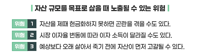 이렇게, 자산 규모를 목표로 삼을 때 노출될 수 있는 위험한 상황이 있습니다.