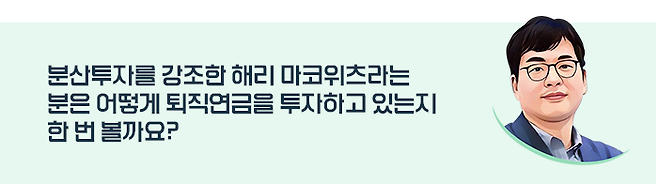 마코위츠는 어느 날 기자에게서 “퇴직연금을 어떻게 투자하고 있느냐”는 질문을 받고 다음과 같이 답했다고 합니다.
