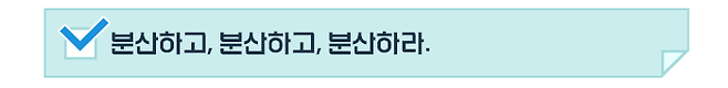 하지만, 높은 수익을 추구하다 보면 위험이 커질 것이라는 우려가 있기 마련입니다. 이런 위험을 피할 방법을 샤프 교수는 이렇게 말했습니다. “분산하고, 분산하고, 분산하라”