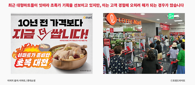 대형마트들도 이 흐름을 인식해, 최근에는 더 파격적인 할인 상품들을 쏟아내고 있습니다. 하지만 이는 근본적인 해법이 되지 못합니다. 가격 구조 자체가 흔들린 상황에서 초저가 상품을 만들려면 마케팅 비용을 들여야 하고, 결국 수량 제한이 붙을 수밖에 없기 때문이죠. 이런 상품은 모든 고객이 구매할 수 없기 때문에, 오히려 불만이 생기고, 때로는 브랜드에 대한 반감으로까지 이어지기까지 합니다.