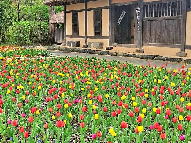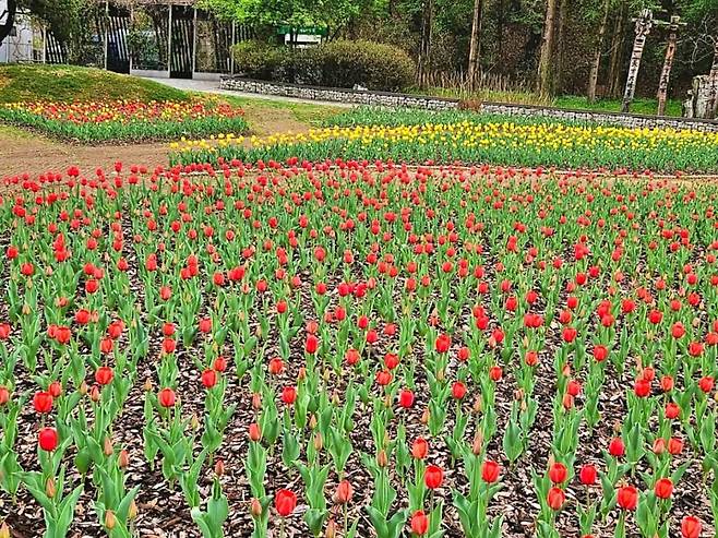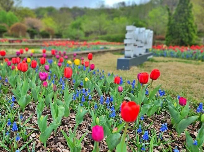 수목원 내에서는 알록달록한 꽃들이 아름답게 피어나며, 특히 튤립은 봄을 대표하는 꽃으로 관람객들을 맞이한다.