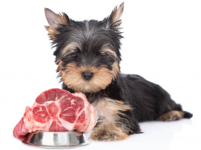육회나 육사시미로 먹을 수 있을 정도로 신선한 경우, 생고기도 급여가 가능하긴 해요. 실제로 생식을 먹는 강아지도 종종 있죠. 하지만, 생고기 급여 시 식중독의 위험이 있으니 가급적이면 익혀서 먹이는 게 좋습니다.