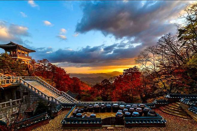 단풍으로 물든 대둔산의 경치와 태고사의 풍경은 고요한 사찰의 분위기 속에서 밝게 빛나는 충남의 단풍 명소라 할 수 있죠. 대둔산 트레킹과 함께 즐겨도 좋으니 여러 방면으로 가을 분위기를 즐겨보세요.
