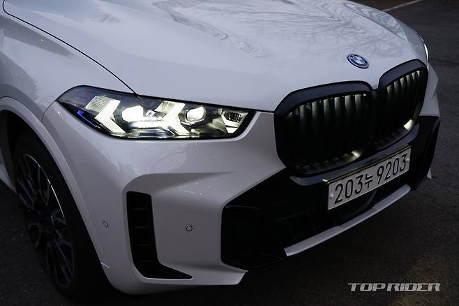 참고로 타이어 크기는 전륜 275/40, 후륜 315/35다. X5 50e는 가격 기준 상위 트림에 속하는데 BMW 레이저 램프가 빠진 것은 의외다. X5 50e 어댑티브 LED 헤드램프는 하이빔 보조를 지원한다. X5 50e는 폭포수가 흐르는 듯 은은한 조명의 아이코닉 그릴이 기본이다.
