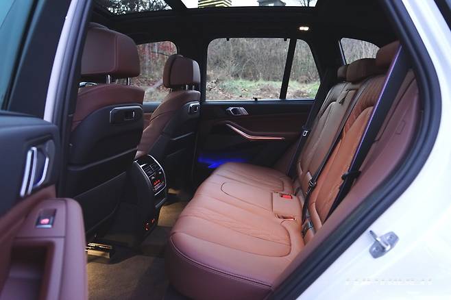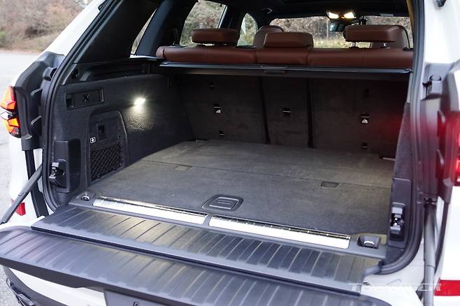 1열 시트를 여유롭게 설정하면 2열 레그룸 공간이 생각보다 부족하다. 2열 시트는 리클라이닝이 안된다. X5 50e는 5인승 단일 구성으로 운영된다. X5 50e 트렁크 용량은 배터리 탑재로 내연기관보다 150ℓ 줄어든 500ℓ다. 테일게이트는 상하가 분리돼 열리는 방식이다.