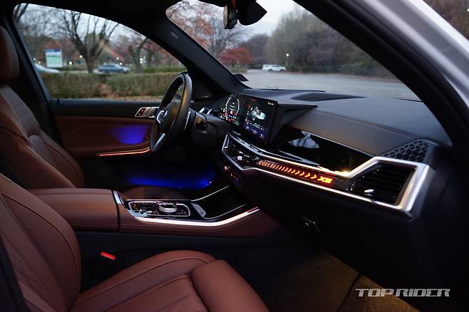 X5 50e 실내에는 12.3인치 디지털 계기판과 14.9인치 디스플레이로 구성된 BMW 커브드 디스플레이, 다기능 터치 컨트롤, 토글 방식 기어레버, 조수석 대시보드 앰비언트 라이트 바, 메리노 가죽 시트, 4-ZONE 공조기, 헤드업 디스플레이, 하만카돈 사운드 등이 적용됐다.
