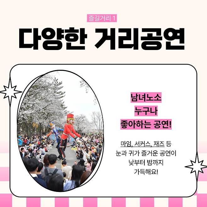 🔹주요 프로그램: 벚꽃거리예술로, 벚꽃라이트쇼, 도로 위 놀이터 등