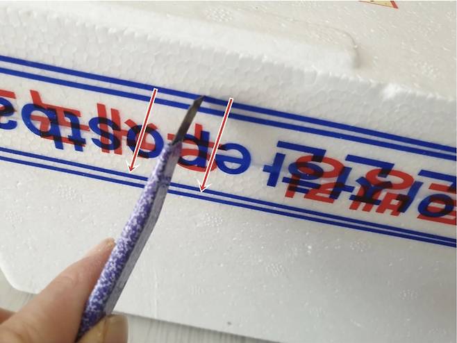 이렇게 자르면 스티로폼 가루가 사방팔방 떨어져요