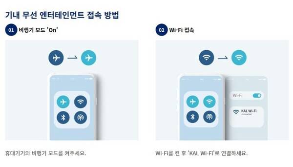 기내 와이파이 서비스는 탑승 후 연결되는 구매 전용 사이트에서 원하는 서비스를 선택해 결제하면 이용이 가능합니다. 항공기 이착륙 중에는 와이파이 사용이 제한됩니다.