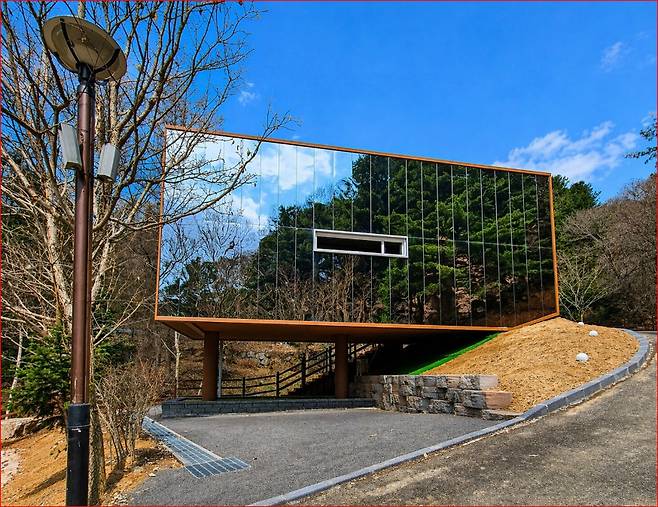 휴양림에서 가장 높은 곳에 자리한 이곳은 사방이 거울과 통창으로 되어 있어, 걷는 각도에 따라 고흐의 그림 같은 숲의 표정을 실시간으로 담아냅니다.