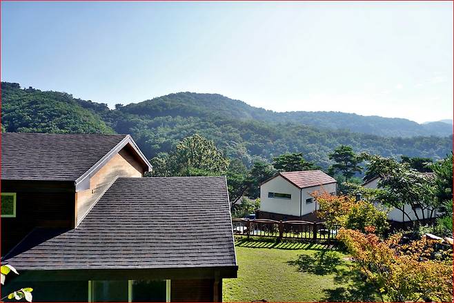 쾌적한 욕조가 있는 화실과 최신형 TV, 와이파이까지 갖춰져 있어 숲 속의 고요함과 현대적 편리함을 동시에 누릴 수 있는 '리조트형 휴양 시설'의 정수를 보여줍니다.