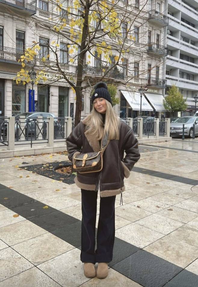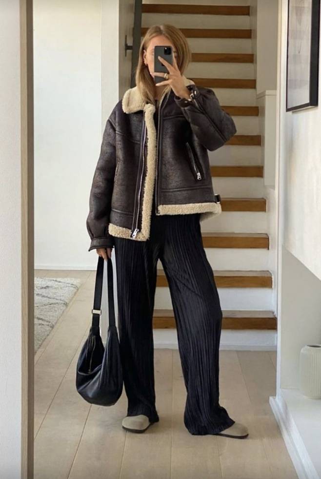먼저, 편안하고 캐주얼한 무드의 무스탕 코디입니다.