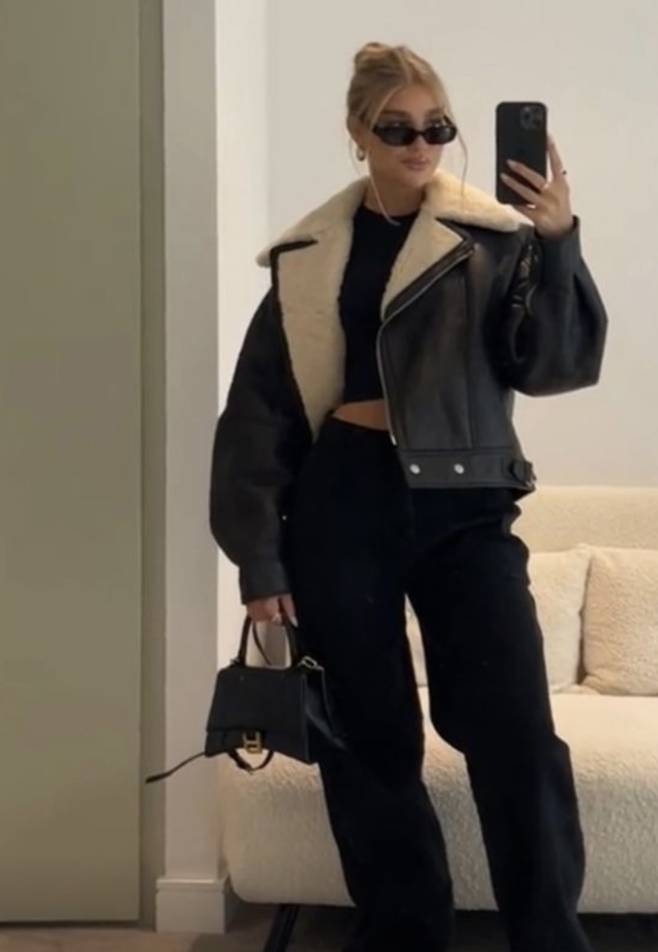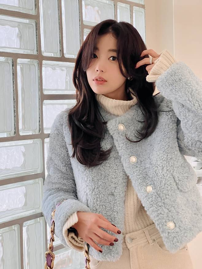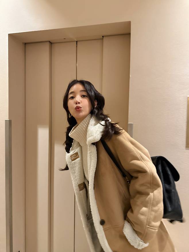 이렇게 숏한 길이감의 무스탕은 귀여운 느낌을 주어