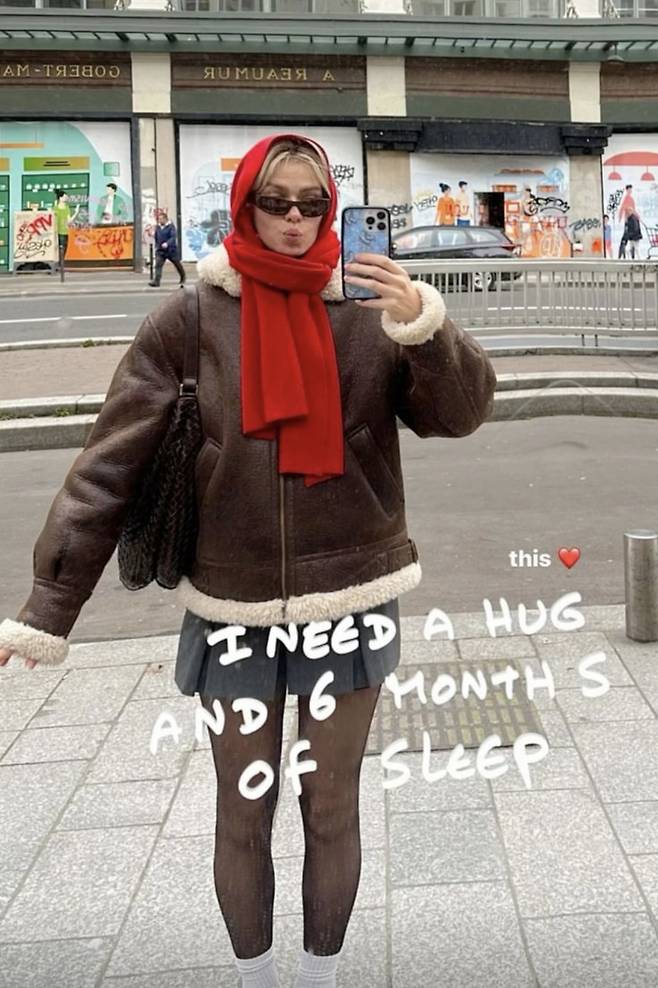 미니 스커트와 함께한 무스탕 코디는