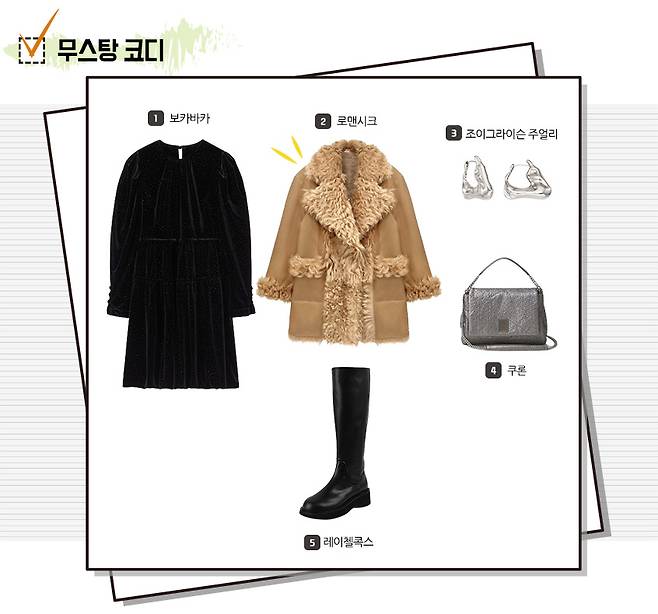 블랙 원피스에 무스탕을 걸쳐 시크한 포인트를 주는 건 어떨까요?
