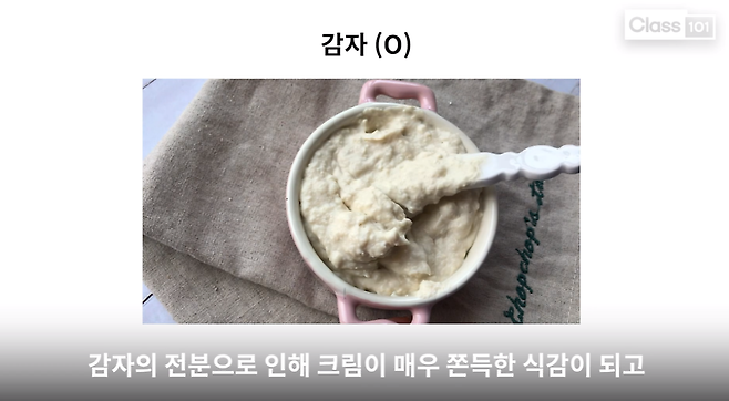 여기서 비장의 무기 '삶은 감자'가 들어가도 좋습니다. 익힌 감자를 1 테이블스푼 (약 20g) 추가로 넣으면 감자의 전분으로 인해 크림이 매우 쫀득한 식감이 되고 조금 더 묵직한 맛이 됩니다.
