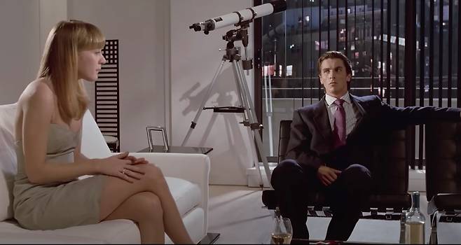 <나인 하프 위크>를 잇는 또 하나의 모던 퍼니처 전시장은 <아메리칸 사이코>(2000)다. 뉴욕 월 스트리트의 M&A 전문가인 패트릭 역시 여피족이다. 겉으로는 부랑자의 복지를 주장하고 테러와 인종차별에 반대하지만, 내면은 완전 반대인 사이코패스. 패트릭의 집에도 찰스 레니 매킨토시의 ‘힐 하우스 체어’와 미스 반 데어 로에의 ‘바르셀로나 체어’(1929)가 놓여 있다. 철저하게 각을 잡아 정돈한 실내는 비닐 레인코트를 미리 착용한 채 사람을 죽이는 패트릭만큼이나 섬뜩하다.