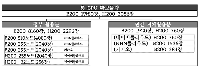 NHN클라우드가 확보한 GPU는 총 7656장으로 전체 물량의 약 58%다. 특히 전량이 최신기종인 엔비디아 B200 GPU이며, 이는 전체 B200 GPU 물량 1만80장 중 약 75%에 해당한다.