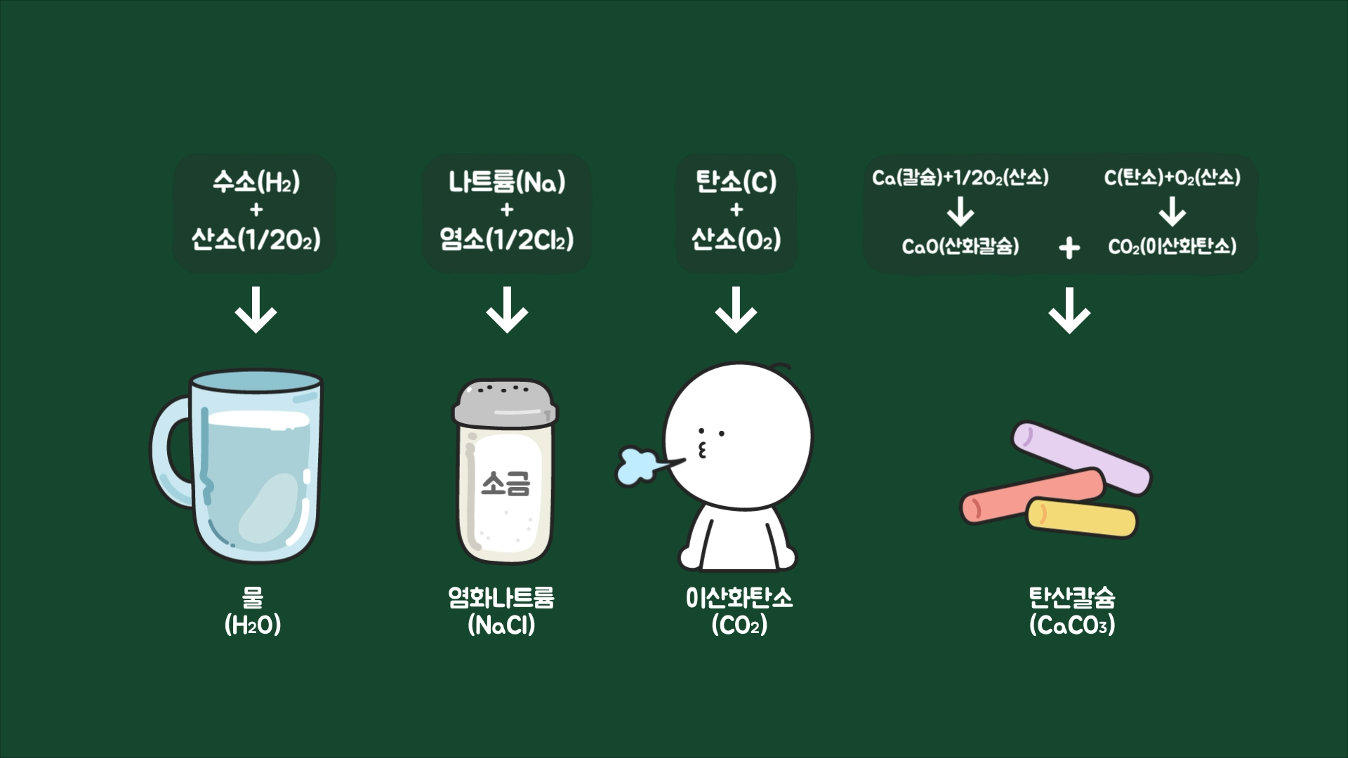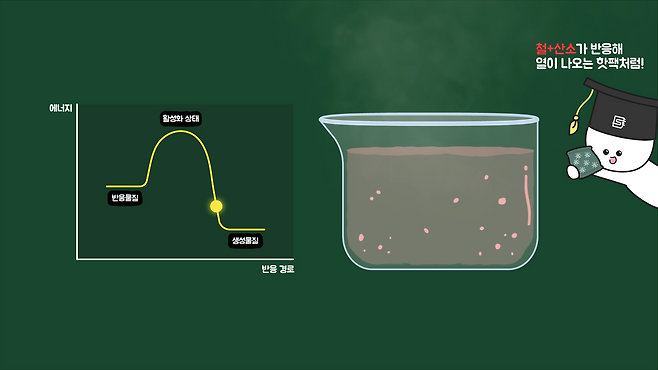 그러다 화학적으로 가장 안정한 상태인 에너지가 가장 낮은 상태에 도달한 원소는 더는 반응을 하지 않을 것이고, 혼합물의 화학 반응은 점차 줄어들며 안정화될 겁니다.