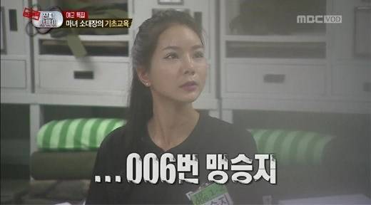 또 부사관이 팔굽혀펴기를 하라고 하자 무릎을 꿇으면서 “여자는 이렇게 한단 말입니다”라고 울분을 토해 웃음을 자아내게 했습니다.
