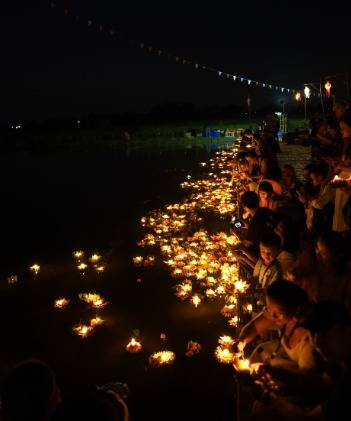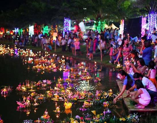 러이끄라통에서 러이는 띄우다, 물에 흘려보내다라는 뜻, 끄라통은 바구니로 바나니잎으로 만든 연꽃 모양의 작은 배에 향초와 생화를 붙여 강가나 호수에 띄워 소원을 비는 행사입니다.