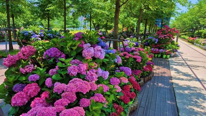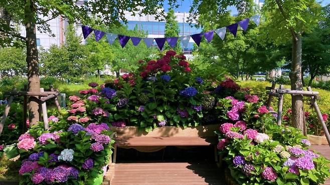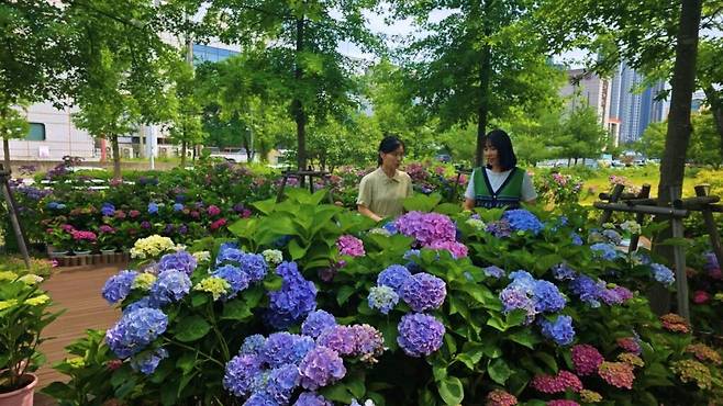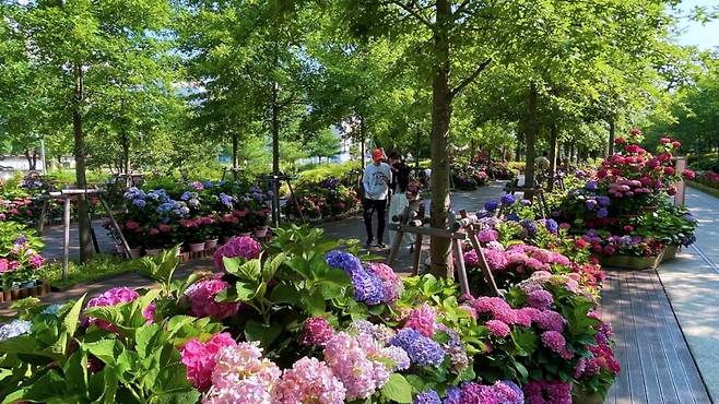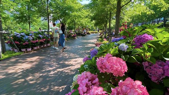 지금 이 순간 수국이 만개한 풍경은 이 도시숲의 존재감을 한층 더 끌어올리고 있다.