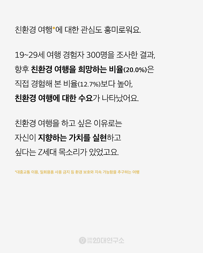 *대중교통 이용, 일회용품 사용 금지 등 환경 보호와 지속 가능함을 추구하는 여행
