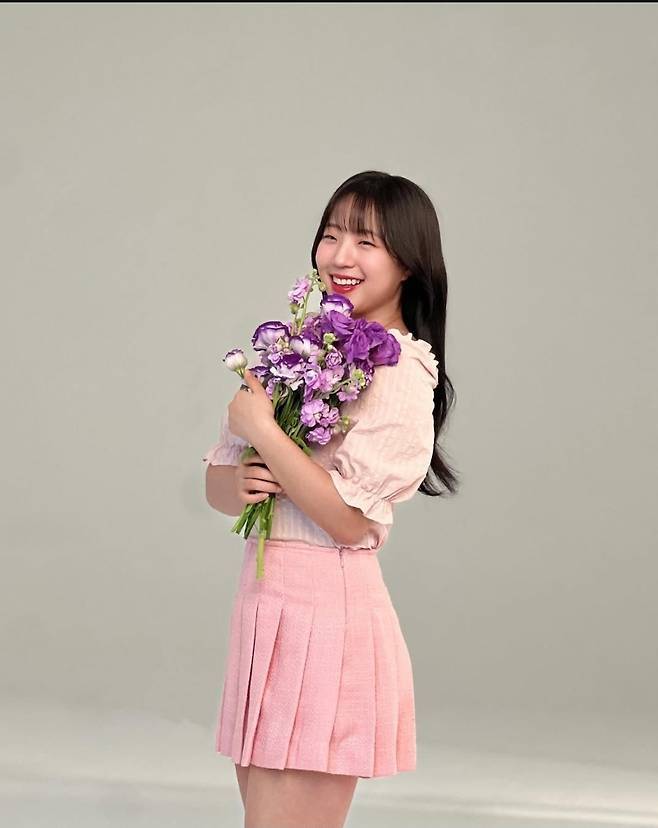 꽃다발을 들고 미소 짓는 신유빈의 모습은 마치 화보 속 한 장면처럼 사랑스러운 분위기를 자아냈습니다.