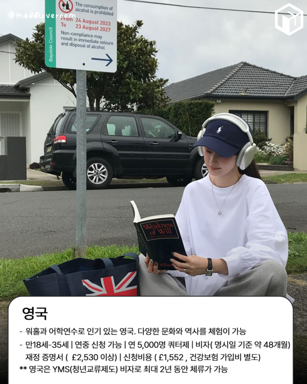 ✔️ 만18세-34세✔️ 연중 선착순 신청 800명 쿼터시 마감✔️ 비자기간( 입국일 기준 약 6개월) | 어학연수 3개월까지 가능✔️ 필수 서류 (300만원 이상의 재정 증명서, 범죄경력증명서, 해외여행건강보험증명서 )