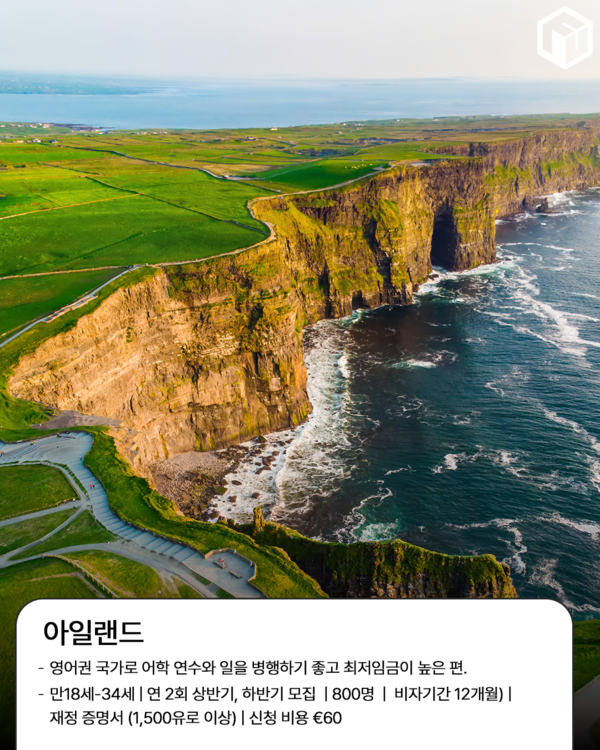 아일랜드는 상대적으로 쿼터가 적은 국가지만, 영어권 국가이며 유럽 여행의 거점으로 삼기에도 좋은 위치로 사람들도 친절하고 안정적인 사회 환경을 갖추고 있어 매년 꾸준히 인기를 얻고 있습니다.