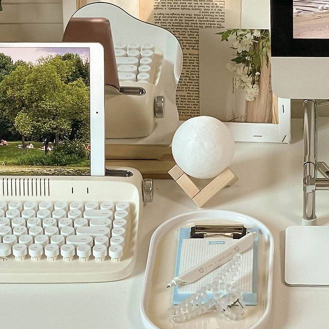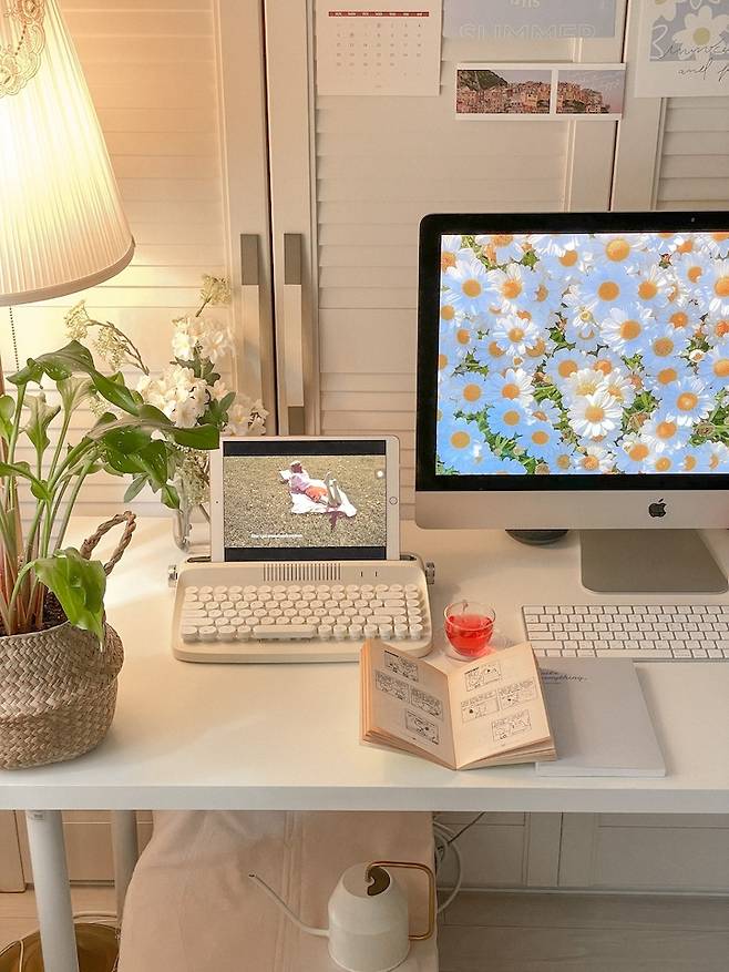 요즘 유행하는 레트로 키보드도 구매해보구요. 열심히 아기자기한 소품들을 사 모으기 시작했어요. 이런 소품들이 모이고 모여 저만의 감성을 완성 시키는 것 같아요.