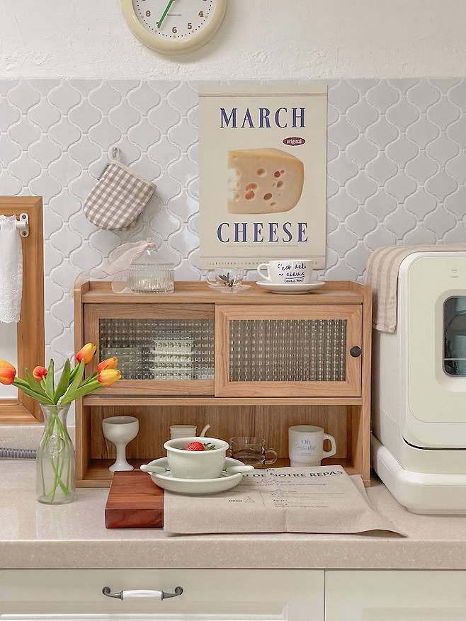 제가 좋아하는 홈카페존! 수납장 하나만 있어도 이쁜 홈카페 분위기 낼 수 있다구용 :)