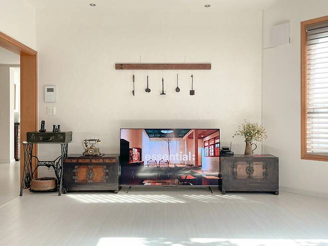 넓은 마당과 높은 층고 그리고 사계절이 느껴지는 큰 창 덕분에 행복한 나날을 보내고 있어요 :) 아무래도 부모님과 같이 사는 집이다 보니 요즘 유행하는 최신 가구들은 없지만 고즈넉하고 옛스러운 가구의 매력에 빠져보세요! 그럼 따뜻하고 편안한 우리집을 소개할게요!