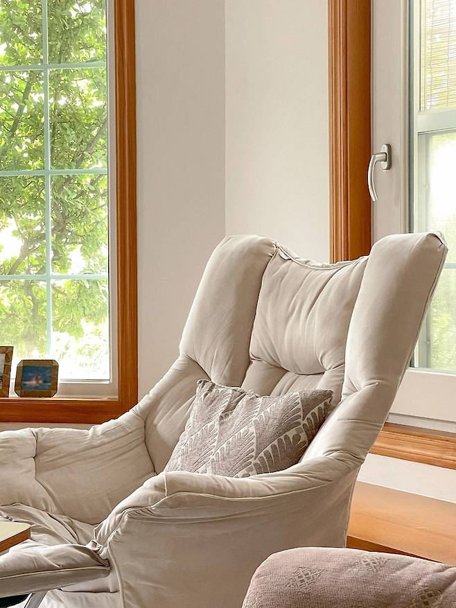 이건 수유의자인데 안락 의자로도 편하다는 말을 듣고 제가 자취할때 구매한거에요.본가로 들어오면서 버릴까 했는데 엄마가 한번 앉아보시고는 너무 편하다며 ㅎㅎ 본가로 함께 오게 되었어요. 지금은 엄마의 최애 휴식공간이 되었답니다.