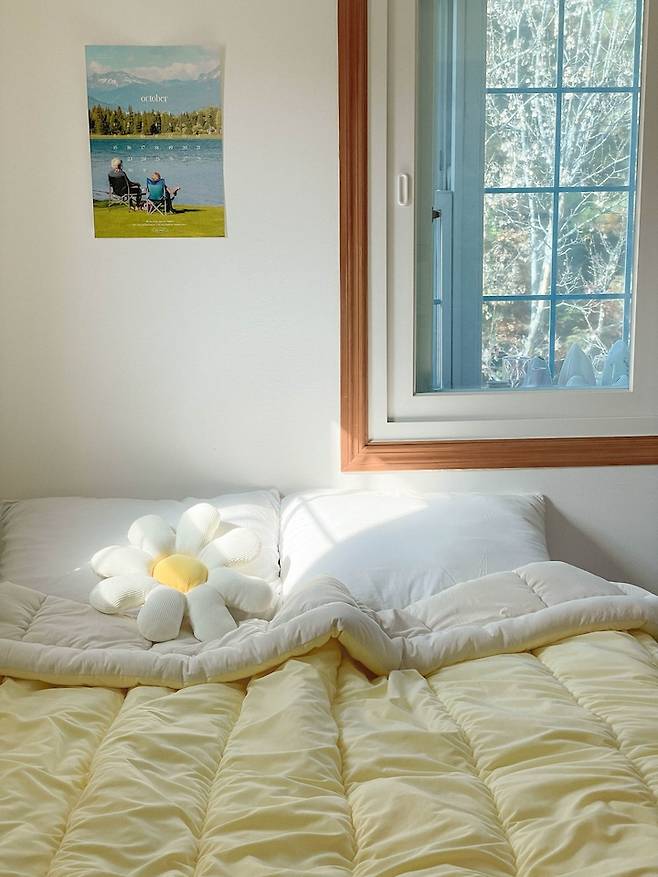 봄에는 노랑노랑한 침구로 바꿔서 산뜻한 느낌을 내주었어요. 침구에 따라 느낌이 정말 확 바뀌죠?