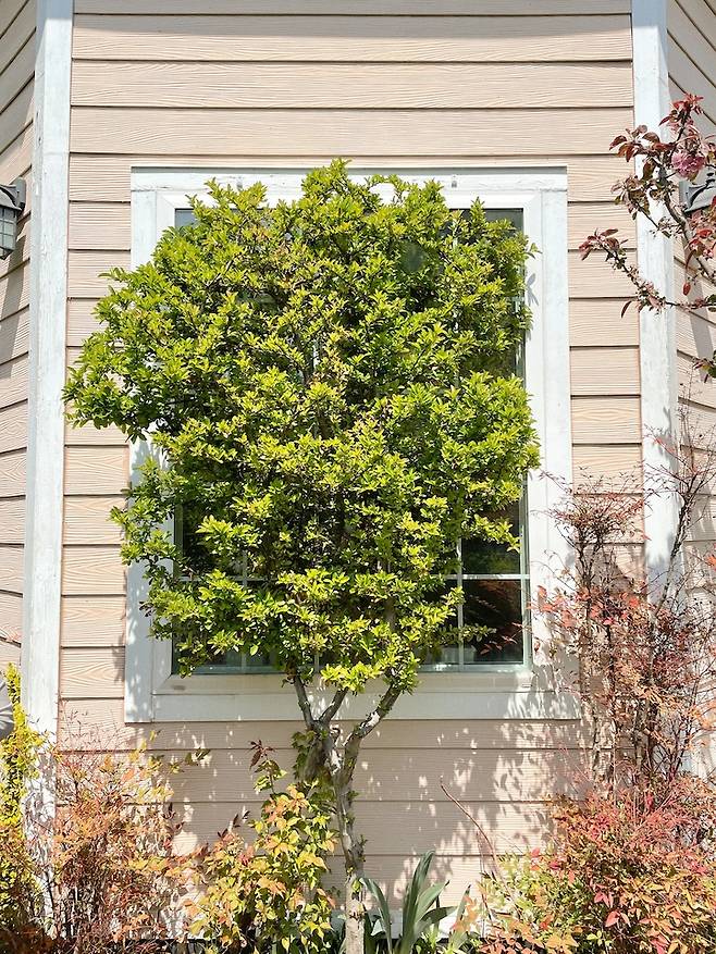 우리집 마당에서 제일 좋아하는 나무! 이 나무를 창문앞에 심은건 정말 신의 한수에요. 밖에서 집안이 보이지 않게 커텐 역할도 해주고, 거실 안쪽에서 보면 이만한 액자가 없거든요. 돈주고도 살 수 없는 귀한 사계절 액자!