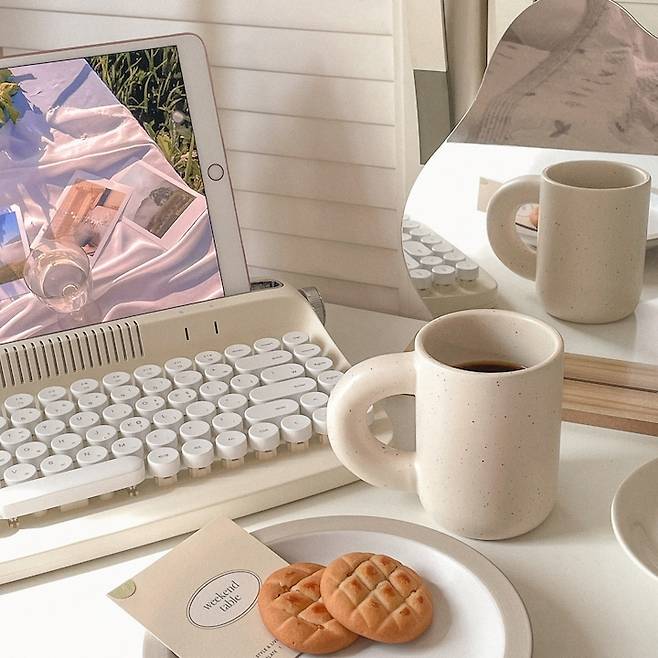 요즘 유행하는 레트로 키보드도 구매해보구요. 열심히 아기자기한 소품들을 사 모으기 시작했어요. 이런 소품들이 모이고 모여 저만의 감성을 완성 시키는 것 같아요.