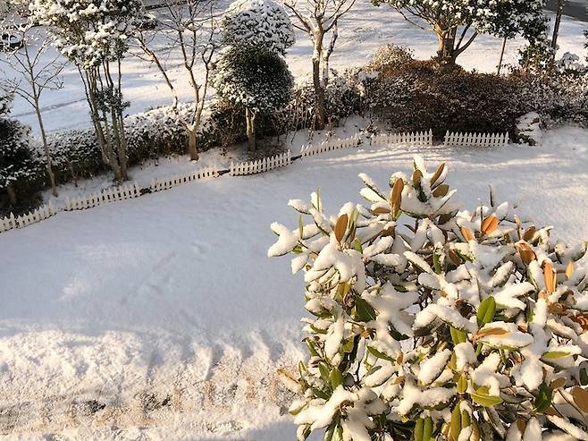 5월엔 장미도 피구요, 겨울엔 잔디와 마당에 쌓인 눈을 구경하는 재미에 살아요. 가끔은 눈사람도 만들곤 한답니다. 운이 좋은날엔 눈밭에 찍힌 귀여운 고양이 발자국도 발견할 수 있어요.
