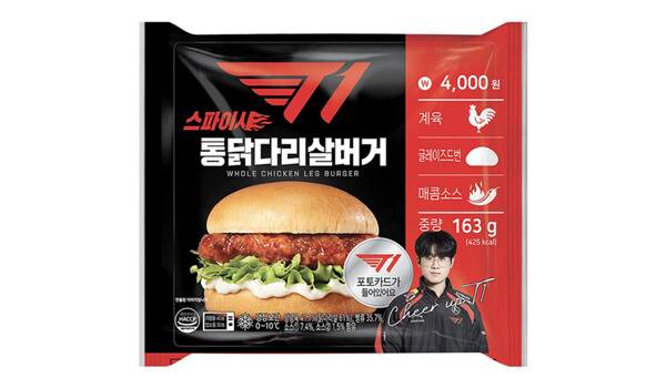 편의점 CU는 글로벌 게임 리그오브레전드의 정상급 프로게임단 T1과 콜라보한 버거 제품 ‘스파이시 통닭다리살버거’를 출시했다. T1 선수단의 화끈한 경기력을 연상시킬 수 있는 매콤 소스로 맛을 낸 것이 특징이다. 글레이즈드 번과 두꺼운 치킨 패티의 조화를 화끈한 맛으로 즐길 수 있는 메뉴다. 제품에는 T1 선수단 포토카드 30종 중 하나가 랜덤 동봉돼 있다. 편의점 판매가는 개당 4,000원이다.
