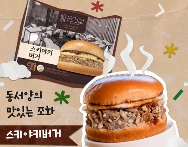 이마트24는 익선동을 중심으로 전국 7개 지점을 가지고 있는 샤브샤브 맛집 ‘온천집’과 손을 잡고 간편식 판매를 개시했다. 협업 상품 중에는 버거도 있는데, 바로 ‘스키야키 버거’다. 햄버거 패티 대신 불고기볶음을 넣고 된장 데리야키 소스, 계란프라이, 양배추 샐러드로 구성한 제품이다. 온천집에서 먹을 수 있는 스키야키 메뉴를 버거로 재해석한 제품이다. 편의점 기준 판매가는 3,900원이다.