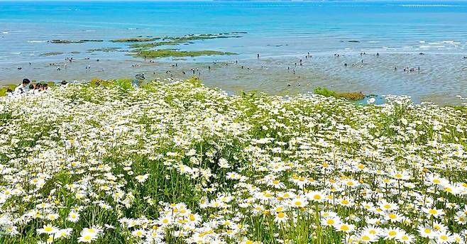 해안선을 따라 펼쳐지는 부안변산마실길 코스는 바다를 옆에 끼고 걷는 즐거움과, 길가에 만개한 데이지 군락의 아름다움을 동시에 선사한다.