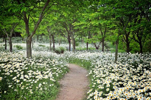 샤스타데이지는 흰 꽃잎에 노란 중심을 지녀 '계란후라이꽃'으로 불리기도 하는데, 군락을 이뤄 피었을 때의 풍경은 마치 유럽의 시골길을 연상케 한다. 바람 따라 물결치듯 흩날리는 꽃들 사이를 걷는 기분은, 그야말로 영화 속 한 장면과 같다.