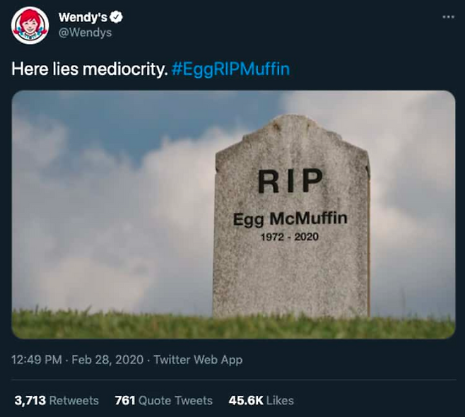 웬디스는 소셜 마케팅을 잘하기로 유명하다.