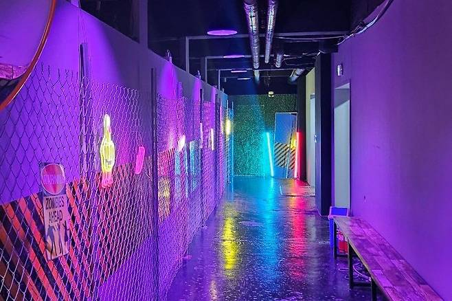게임은 8대8 팀전으로 최대 16명이 동시에 즐길 수 있는 넓은 140평 규모의 공간에서 진행되는데요. 한 판 8,000원이라는 가격에 10분 정도의 짜릿한 시간을 만끽할 수 있습니다. 게임이 끝난 뒤에는 잠깐의 휴식 시간도 주어지며 긴장감이 풀리면서 다시 한번 전투에 돌입할 준비를 할 수 있답니다.
